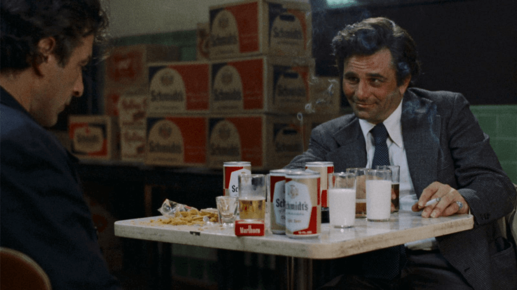 Uma cena significativa ocorre em um bar sujo, onde Nicky e Mikey, exaustos, discutem sob a luz fraca. O close-up prolongado de Falk, com a câmera parecendo sufocá-lo, revela o peso de anos de ressentimento. A improvisação dá à cena uma autenticidade crua, como se os atores vivessem aqueles homens quebrados. É um momento que encapsula a tragédia do filme: a amizade, outrora vital, agora é um campo minado.