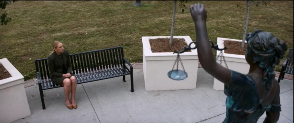2. Faith Killebrew, uma promotora cuja jornada moral é um contraponto a Justin Kemp (podemos ver pelo simbolismo da cena abaixo que ambos estão divididos por conceitos distintos de justiça).