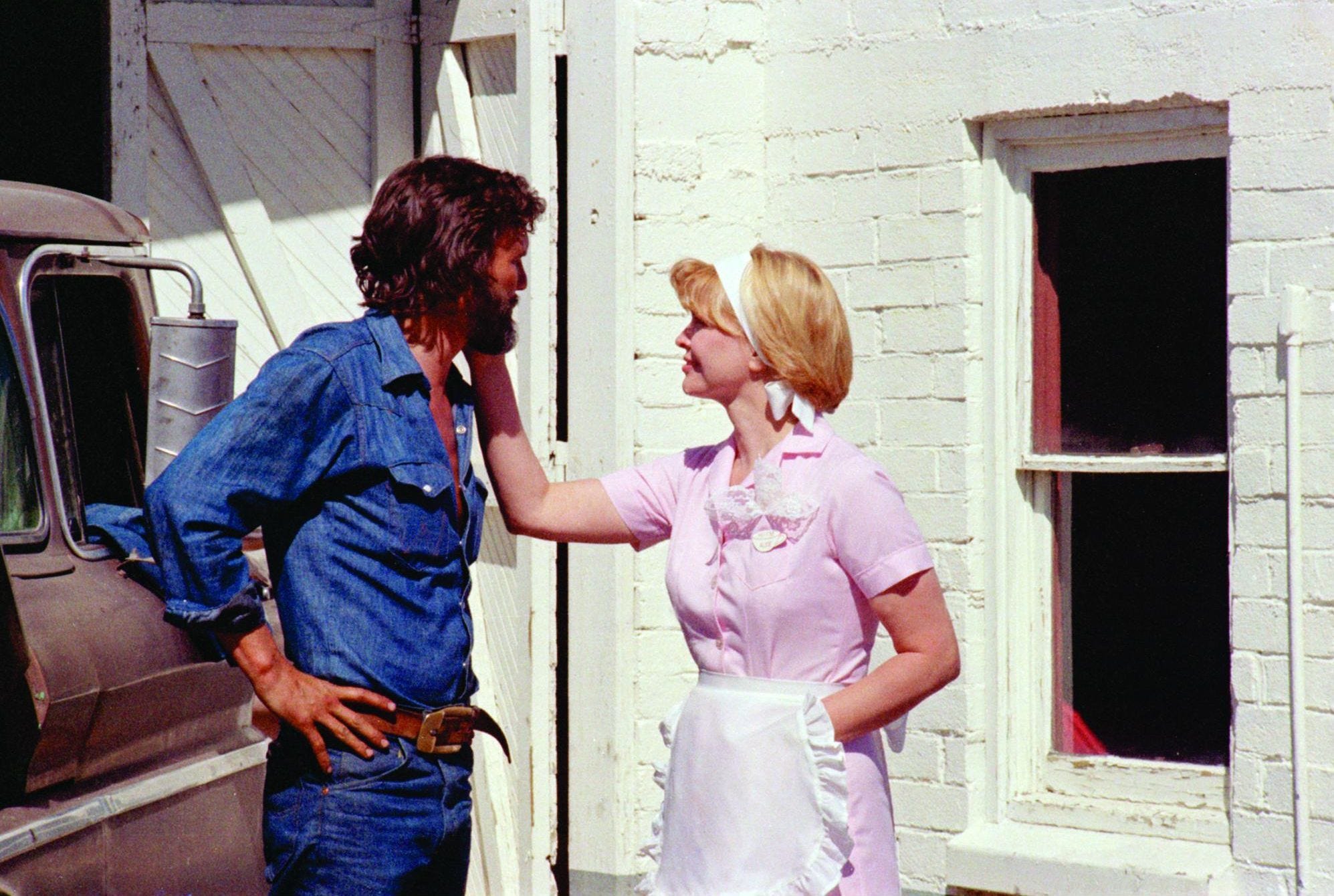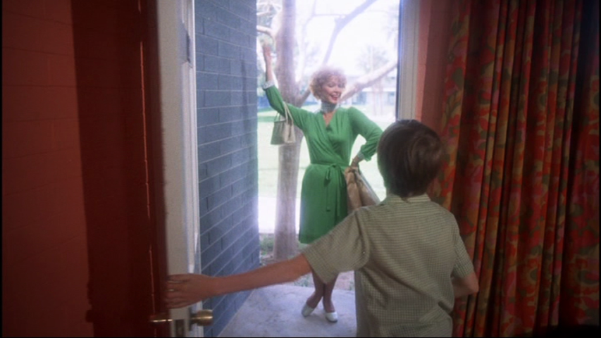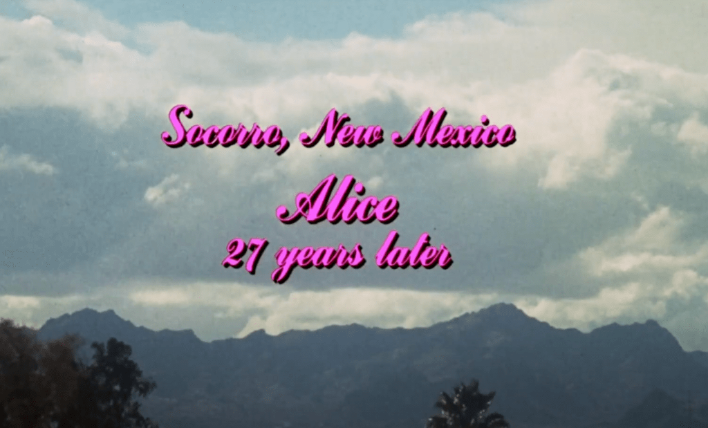 Estabelece-se uma sensação de nostalgia e confinamento onírico, como se fosse um “filme dentro do filme” da mente da personagem. Essa escolha visual não só homenageia o cinema clássico, mas também simboliza os sonhos limitados e idealizados da menina, que são abruptamente “abertos” para o mundo mais amplo e caótico da vida real. Após o prólogo, que termina com a imagem se afastando da tela como se estivesse fugindo, há uma transição abrupta (“smash cut”) para o presente: a tela se expande para 1.85:1 (o formato widescreen comum nos cinemas americanos dos anos 1970), com créditos sobrevoando a cidade de Socorro, Novo México, e os letreiros informando que se passaram 27 anos.