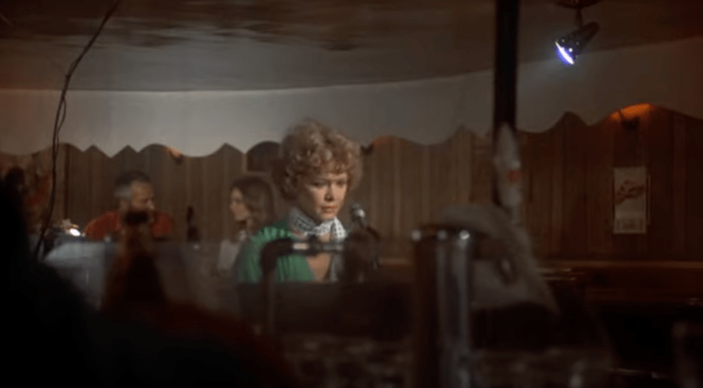 Essa sequência começa com Alice no piano, inicialmente nervosa em sua audição para o dono do bar, mas logo ela entra em um fluxo catártico, passando de “Where or When” (um clássico de 1937 composto por Rodgers e Hart, popularizado na era do jazz e dos musicais de Hollywood) para “When Your Lover Has Gone” e, finalmente, para “Gone with the Wind” (um standard de 1937 por Allie Wrubel e Herb Magidson). As canções são fragmentos de um tempo mais elegante e romântico, em que ela tenta reviver seus sonhos infantis de fama como cantora, mas que são confrontados com a banalidade real e opressiva do local – um ambiente poeirento e modesto, frequentado por clientes comuns, com iluminação fraca e atmosfera pesada, longe do glamour que as canções sugerem.
