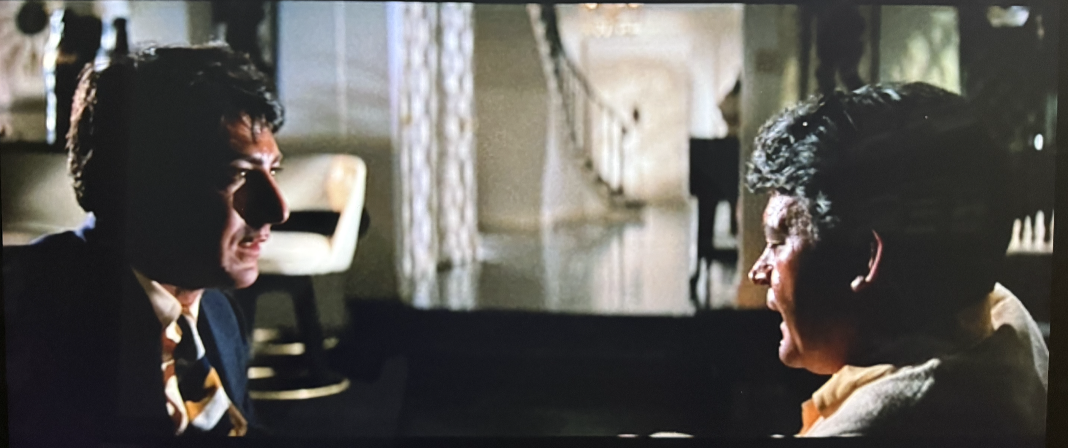 Quando a Sra. Robinson convida Benjamin a observar um quadro de Elaine, eles estão na sala da residência dela. Temos uma iluminação específica, tudo parece estar exposto e visível.