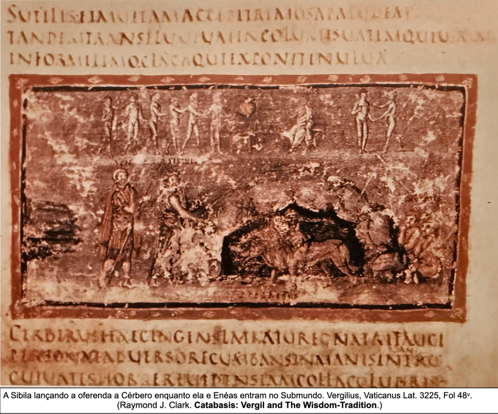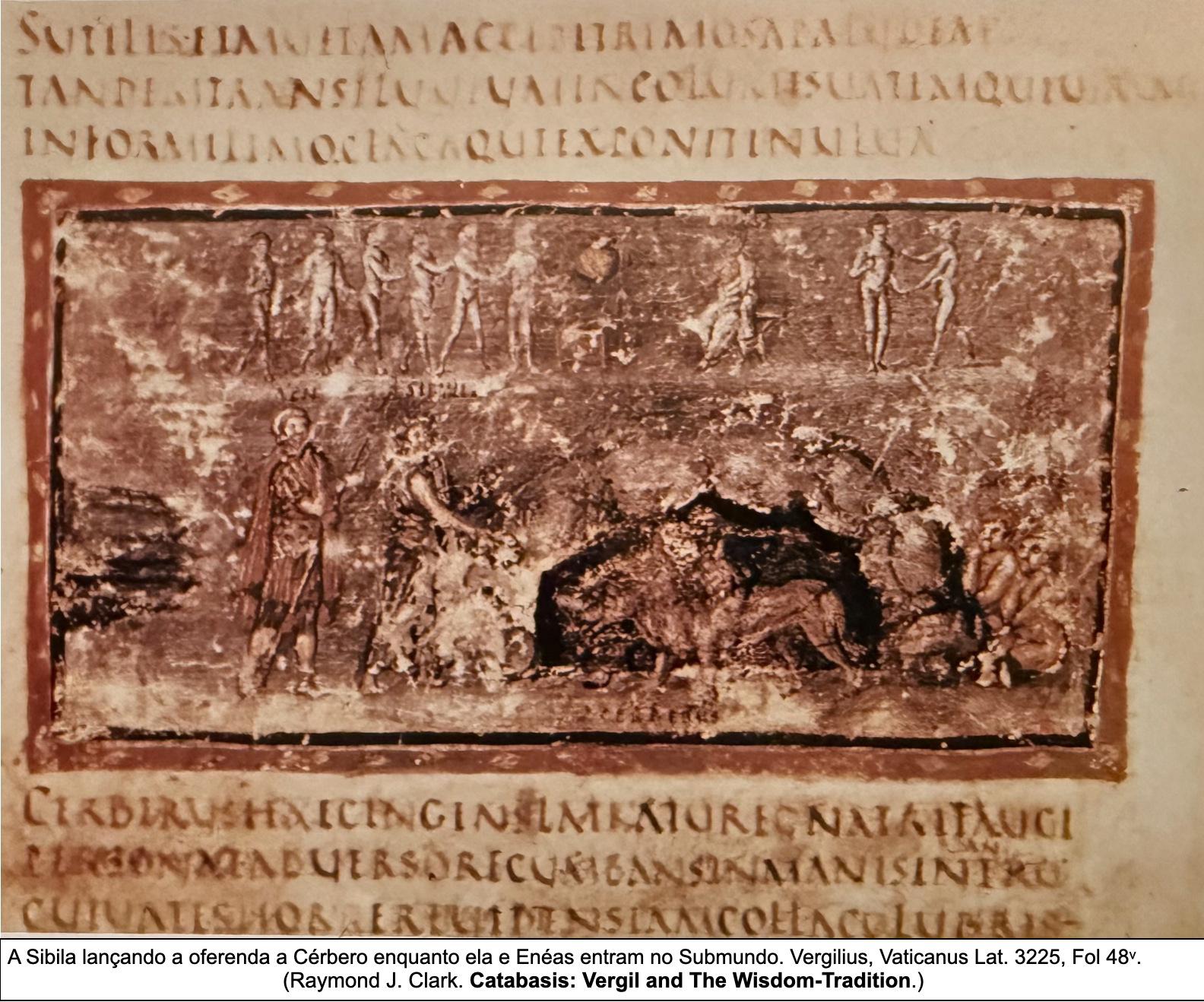 No sexto livro da Eneida, de Virgílio, o herói do poema, Enéas, desce ao submundo e encontra vários mortos famosos antes de se reunir com seu pai (Anquises), a quem consulta sobre o que o destino reserva a ele e, depois da consulta, retorna ao mundo dos vivos. A tradição da catábase (do grego κατάβασις, “descida”) da literatura ocidental — da Odisseia à Divina Comédia — envolve uma jornada ao submundo (“decensus ad inferos”) cujo saldo é uma revelação existencial, muitas vezes dependente do confronto com as ilusões do presente e do passado. Virgílio baseou-se no relato de Homero em sua Odisseia sobre a viagem feita por Odisseu para consultar os espíritos dos mortos e em diversos mitos tradicionais (que sobreviveram em várias formulações literárias): por exemplo, a expedição de Orfeu ao submundo, para trazer de volta Eurídice. Essa tradição tem raízes profundas não apenas na mitologia clássica, mas também em textos religiosos, frequentemente servindo como um recurso narrativo para explorar temas como morte, transformação, conhecimento e redenção. O épico babilônico de Gilgamesh (2000 a.C.) conta a jornada catabática de Gilgamesh, personagem ao mesmo tempo divino e sujeito às aspirações e aos sofrimentos humanos. Provavelmente é o mito catabático secular mais antigo do mundo.