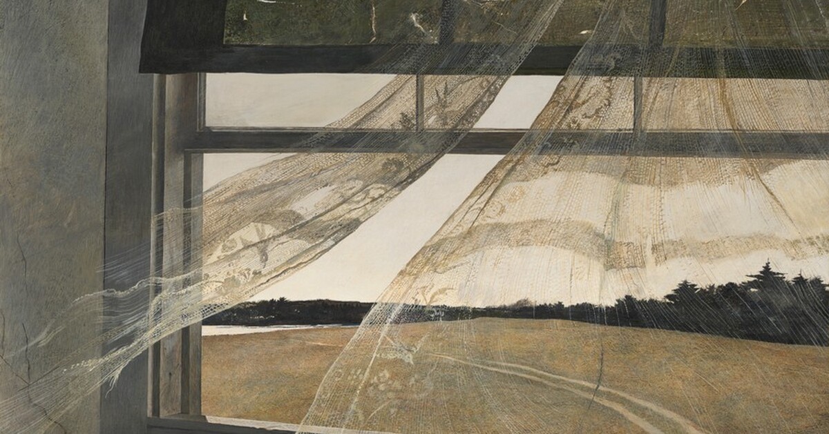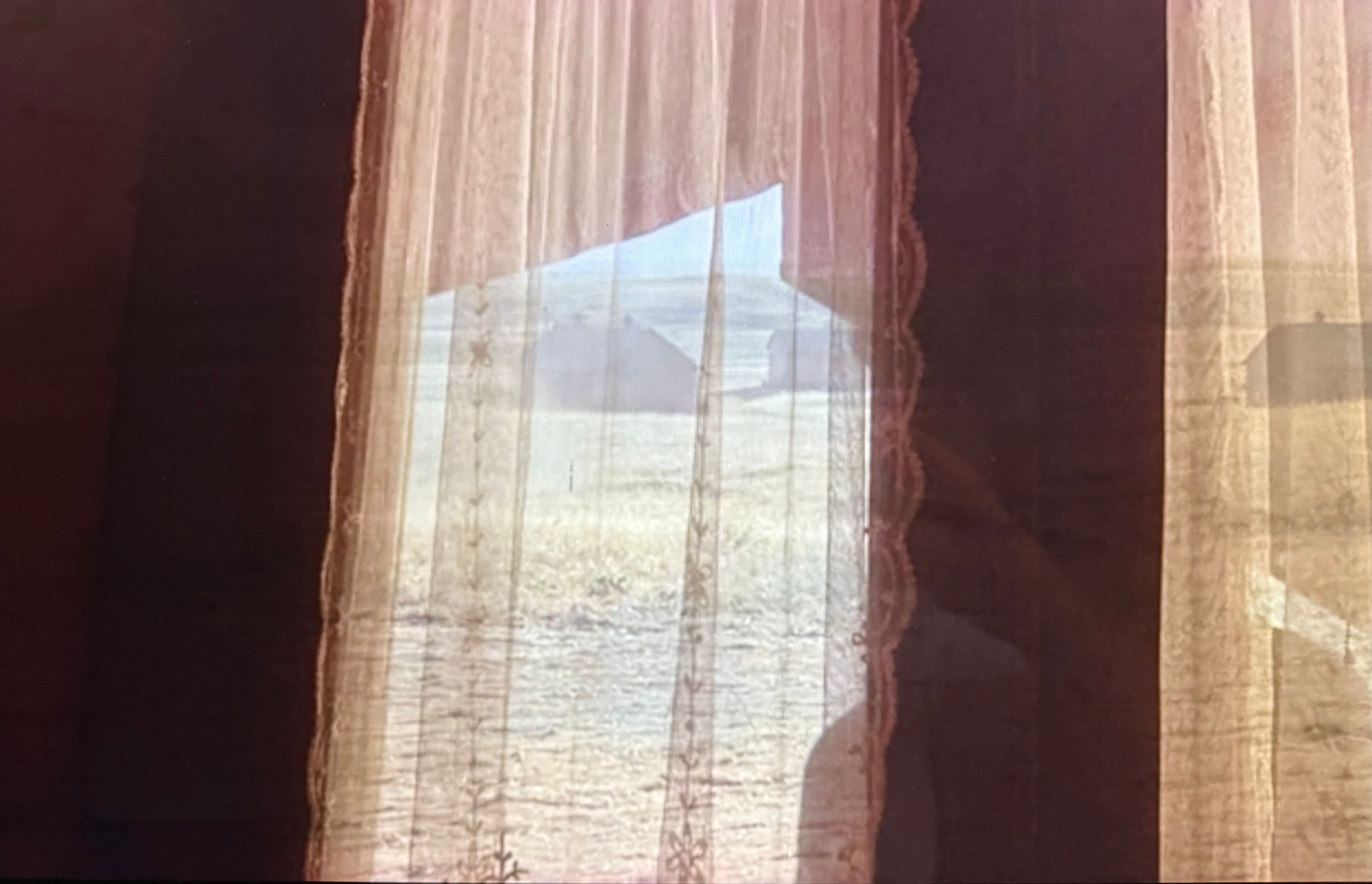A cinematografia de Dias de Paraíso dialoga abertamente com a pintura norte-americana, especialmente a de Andrew Wyeth (1917–2009). As semelhanças com obras como Christina’s World (1948) nascem de uma intenção clara: registrar a essência da vida rural nos EUA. Wyeth, expoente do realismo, construiu sua obra sobre pilares que encontram correspondência direta na cinematografia de Almendros: luz dramática de aurora e crepúsculo para contrastes suaves e etéreos; paisagens vastas que evocam simultaneamente isolamento e comunhão com a natureza; texturas minuciosas de grama, madeira, tecido. No filme, isso vira quadros wyethianos: campos dourados ao pôr do sol, silhuetas contra céus infinitos, um mundo belo e efêmero. Essa estética sublinha o paraíso frágil, ruído pelo mal humano. No filme, isso vira quadros wyethianos: campos dourados ao pôr do sol, silhuetas recortadas contra céus infinitos e a sensação permanente de um mundo belo e transitório. Essa estética sublinha o que Malick quis transmitir aos espectadores: um paraíso provisório desfeito pelo mal humano. [abaixo, intercalados com cenas do filme, Christina’s World (Andrew Wyeth, 1948) e Wind from the Sea (Andrew Wyeth, 1947), respectivamente].